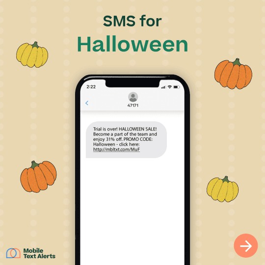 “[Business Name] Trial is over! HALLOWEEN SALE! Become a part of the team and enjoy 31% off. PROMO CODE: [code]