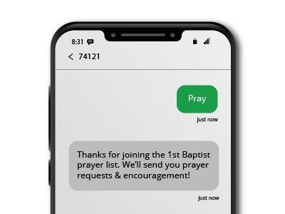 For example, if your church wanted to use SMS messaging to share prayer requests with congregants, you might set it up so that your congregants text “pray” (keyword) to 41372 (short code) to join the list.