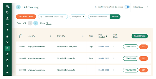 With your text alert system, you’re able to send trackable links to your audience. Then you can view the clicks for those links from within your Link Tracking Report.